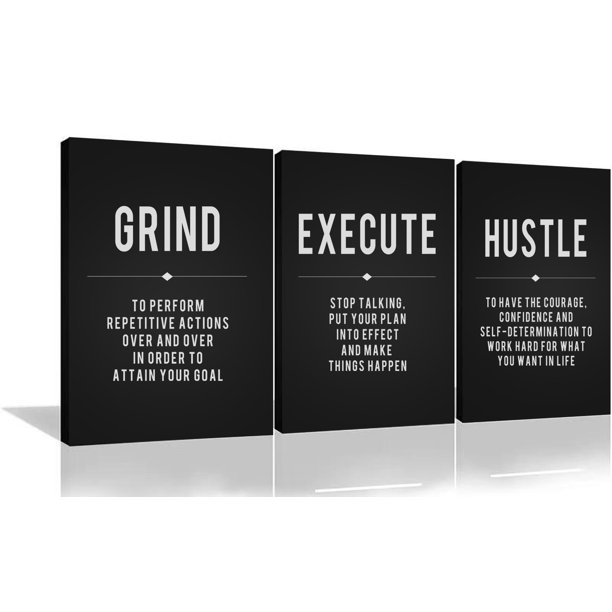 Motivational Wall Art Office Decor Positive Quote Posters Hustle Black Prints 3 Pieces Ready To Hang 12 X16 X3 Panels Walmart Com
